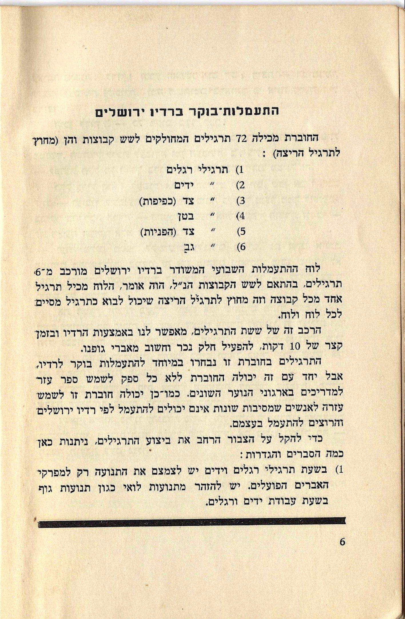 התעמלות בוקרברדיו ירושליםלבית, למחנות , לארגוני נוער