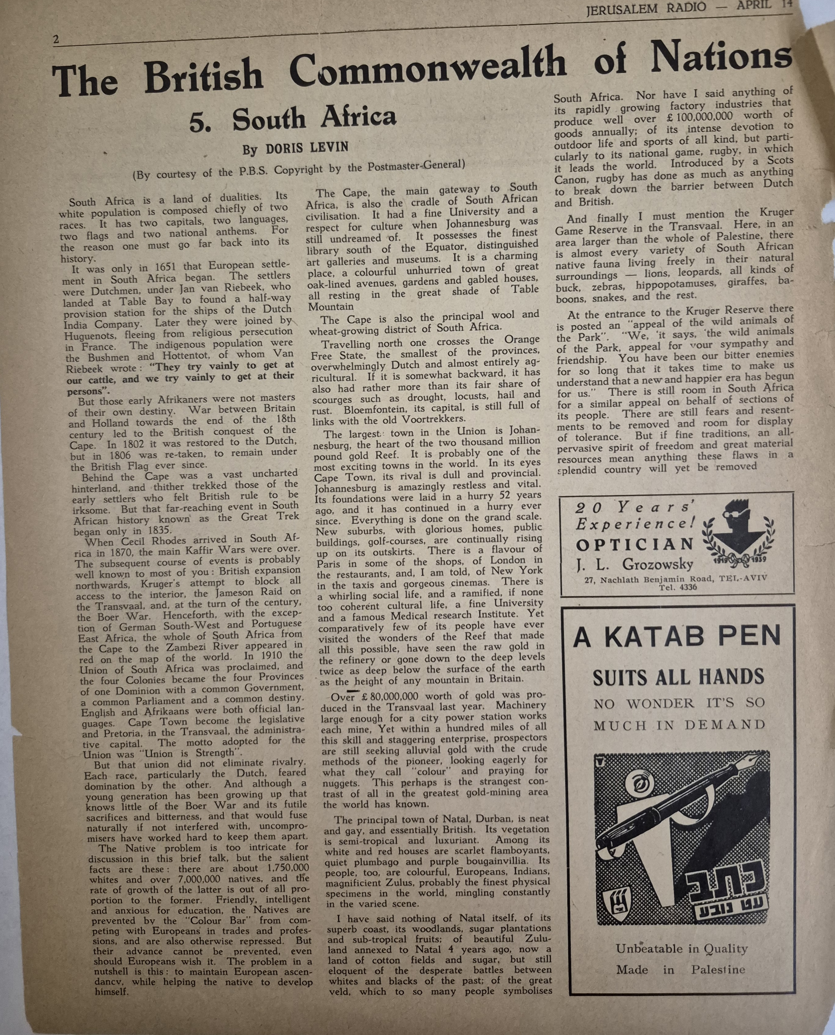 The Only Radio Publication in Palestine