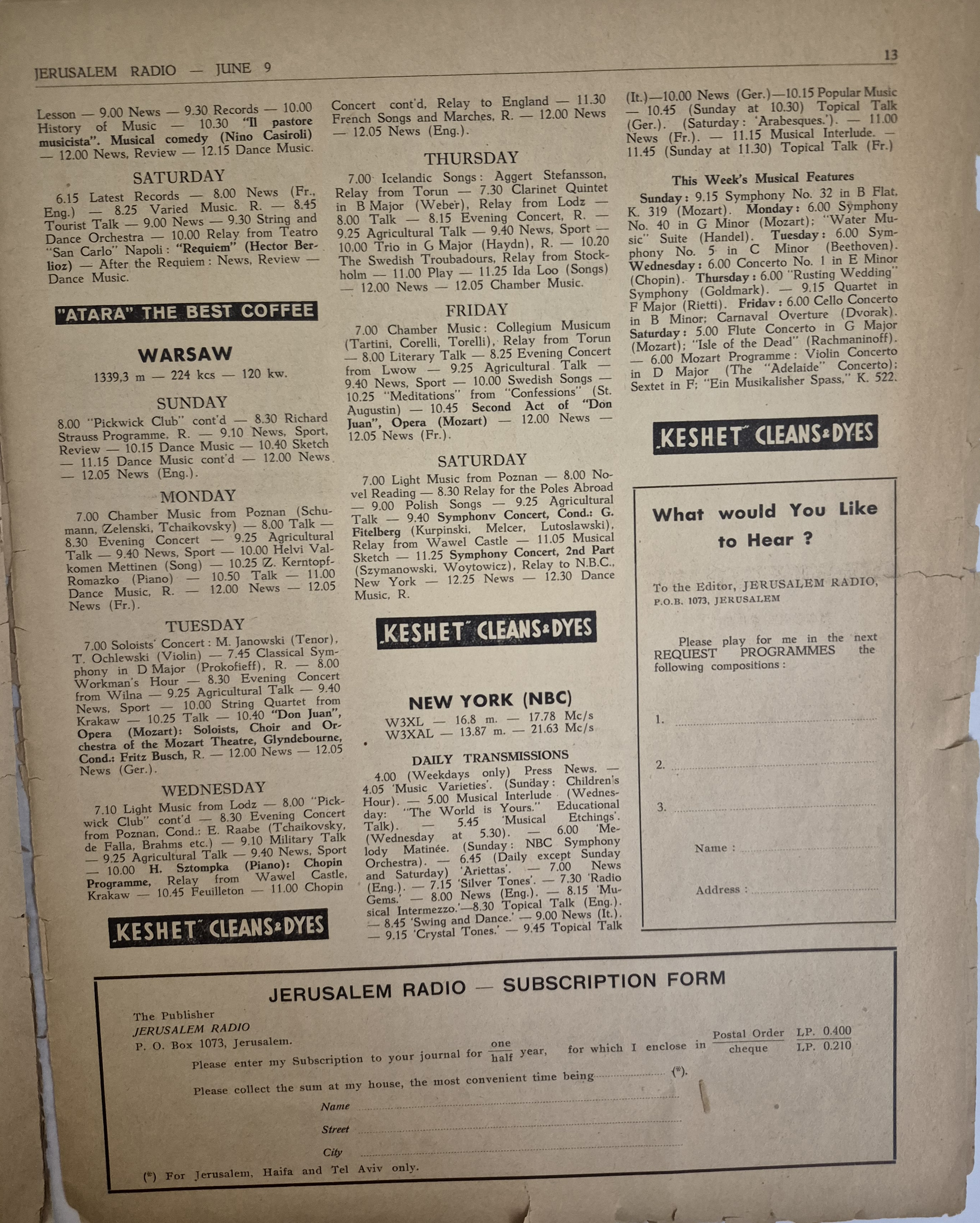 The Only Radio Publication in Palestine